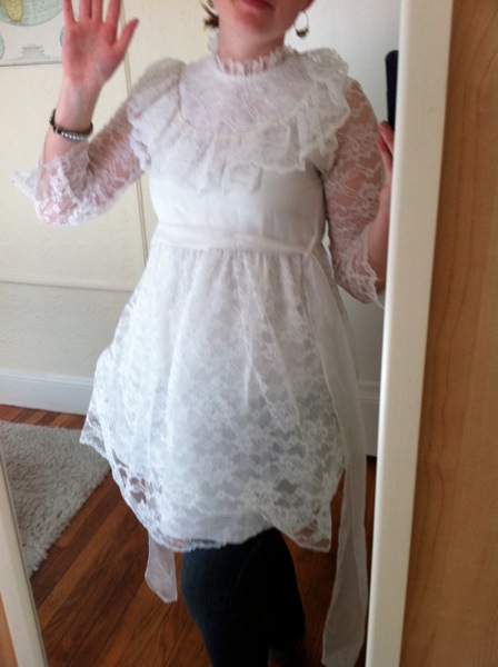 Feather boas, a child's black t-shirt, an orange onesie (it was thicker than a t-shirt and I liked the color), a large men's white t-shirt and the piece de resistance: a child's Christening gown.